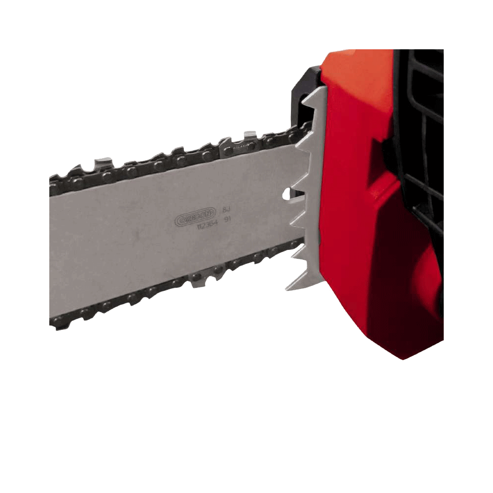 Električna motorna pila GH-EC 1835 praktičan je i moćan alat koji se pokazao kao pouzdan pomagač pri piljenju drva za ogrjev, prorjeđivanju i rušenju manjih stabala. Robusna oštrica i lanac osiguravaju optimalnu učinkovitost rezanja. Lanac se može zategnuti i promijeniti bez alata. Kvalitetan, robustan metalni zupčanik osigurava dobar prijenos snage i dug radni vijek. GH-EC 1835 opremljen je zaštitom od povratnog udarca s mehaničkom trenutnom kočnicom lanca, koja osigurava da se lanac odmah zaustavi ako se pila podigne. Razina ulja u spremniku ulja automatskog sustava za podmazivanje lanca može se lako provjeriti zahvaljujući velikom kontrolnom staklu. Veliki otvor za punjenje ulja s brzim otpuštanjem omogućuje jednostavno dolijevanje ulja. Vijak za hvatanje lanca osigurava sigurnost ako lanac skine. Robusni metalni graničnik pandže osigurava sigurno vođenje i služi kao okretna točka pri piljenju ležećih trupaca. Napojni kabel zaštićen je kabelskim rasterećenjem.