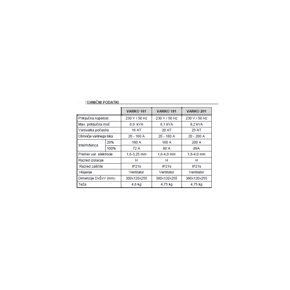 Inverterski ispravljač za zavarivanje VARKO 161 je prijenosni uređaj za zavarivanje s istosmjernom strujom (DC). Upotrebljava se kod zavarivanja konstrukcijskog i nehrđajućeg čelika sa obloženom rutilnom, bazičnom. Primjeren je za montažne poslove,radov na gradilištima i u radionicama.