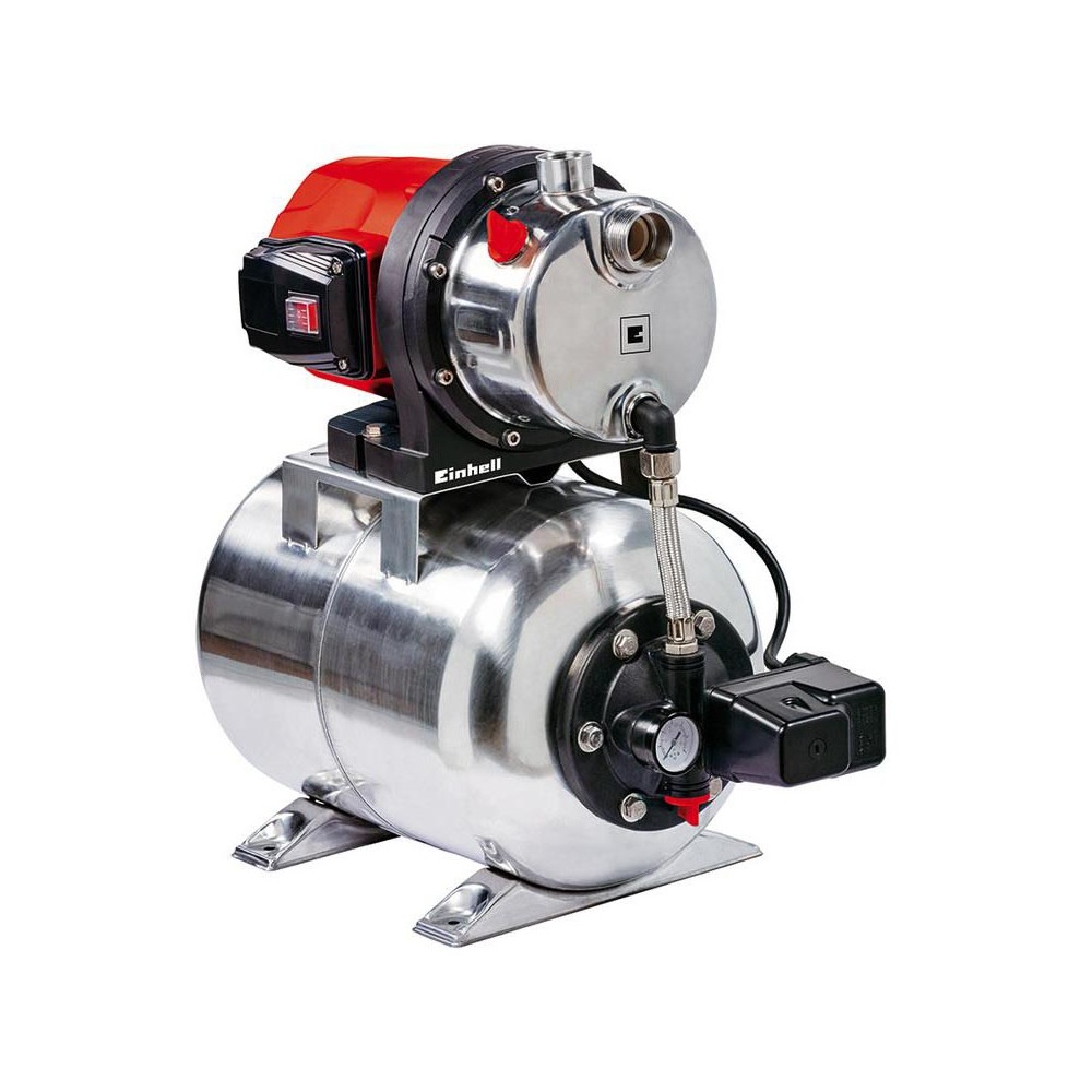 Hidropak Einhell GC-WW 1250 NN je alternativa skupoj potrošnji pitke vode i pomaže uštedjeti novac. To je učinkovito rješenje za pumpanje čiste vode iz rezervoara, šahtova, bunara ili cisterni za upotrebu u kući i u vrtu. Einhell hidropak sastoji se od vodene pumpe s prekidačem za uključivanje / isključivanje i visokokvalitetnog kućišta od nehrđajućeg čelika. Snažna pummpa ima vrlo visoku snagu usisavanja i odgovarajuće intenzivan pritisak i brzinu isporuke. Sa svojim 1.200 W snažnim motorom, pumpa isporučuje do 5.000 litara na sat. Električni motor bez održavanja opremljen je termičkom zaštitom od preopterećenja. Posuda od nehrđajućeg čelika ima volumen spremnika od 20 litara, a za mjerenje tlaka integriran je dobro vidljivi manometar. Voda za kućanstvo ili u vrtu uvijek je dostupna kroz vodovod u kući i održava se pod stalnim pritiskom. Tlačna sklopka za regulaciju automatski regulira razlike tlaka. Visokokvalitetna mehanička brtva osigurava dugi vijek trajanja. Radi lakšeg puštanja u pogon, postavlja se poseban vijak za punjenje vode, čep za ispuštanje vode omogućuje jednostavno odvođenje preostale vode. Lako se pričvršćuje čvrstim nogama sa rupama.