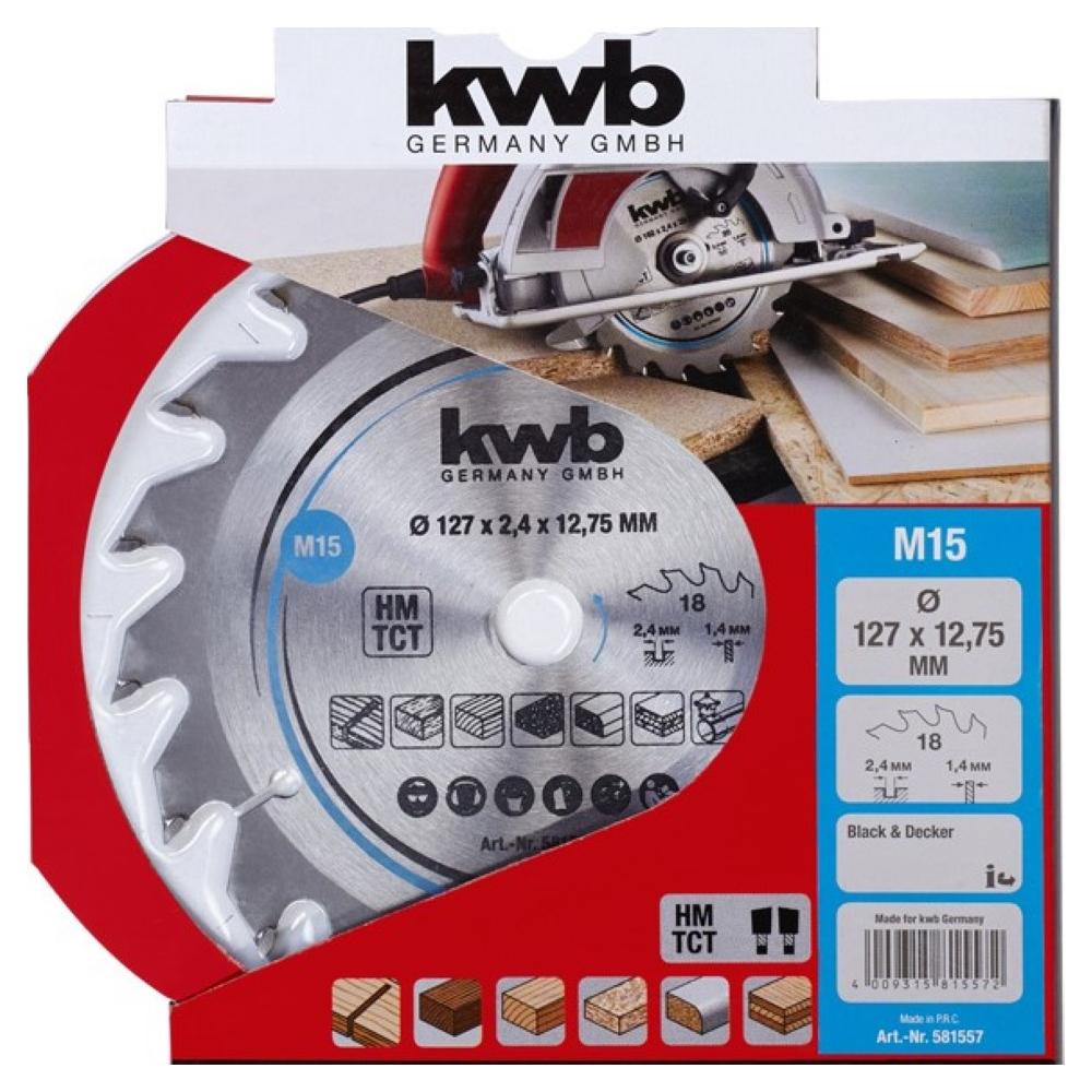 KWB rezni list od Volfram karbida za brzi, čisti rez, pravilni zubi za ručne kružne pile. Za čvrsto drvo, laminirane ploče (radne površine i kuhinjske radne ploče), ploče od kartona, iverice ili ploče od vlakana i plastike ojačane staklenim vlaknima.