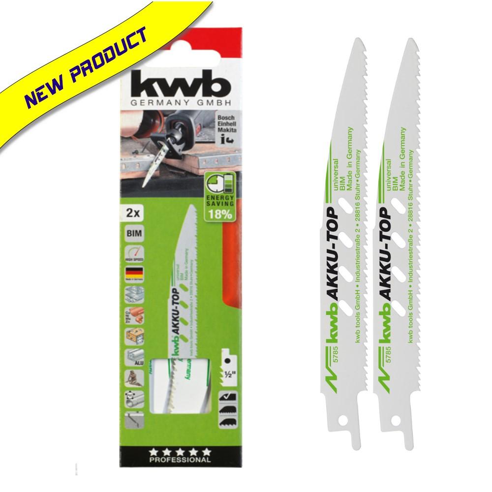 KWB Akku-Top list pile razno nazubljen, novo dvostepeno zaglađivanje, nisko trenje, bolje rasipanje topline, s ventilacijskim utorima, novorazvijena patentirana geometrija pile za dodatni znatno veći rezni tlak. Do 2 puta veća brzina rezanja, za metal, obojene metale, drvo s metalnim ostacima, miješane materijale, plastiku.