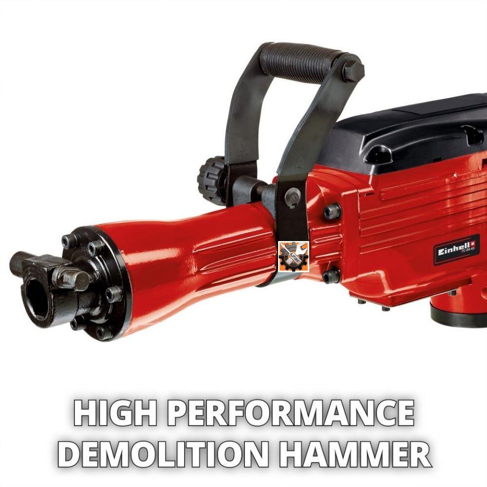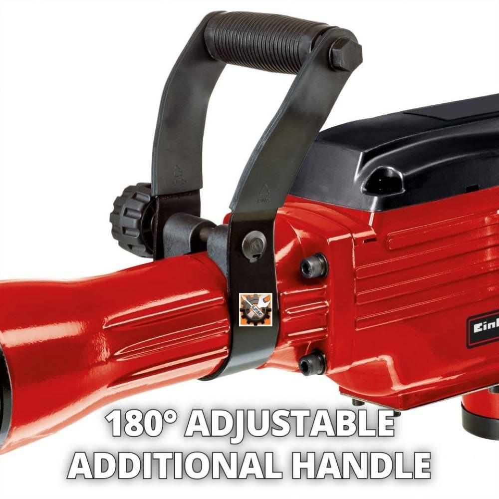 Einhell čekić za razbijanje TC-DH 43 isporučuje snagu udarca od 43 J. Dizajn je robustan i izdržljiv. SDS-hex prihvat omogućuje brzu izmjenu dlijeta. Dodatna drška je podesiva za 180 stupnjeva kako bi je prilagodili specifičnoj situaciji i samim time ugodnije rukovali. Čekić za razbijanje možete koristiti odmah jer se uz njega isporučuju šiljato i plosnato dlijeto u praktičnom koferu za transport i skladištenje.