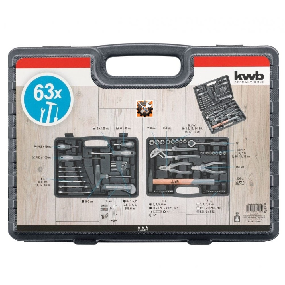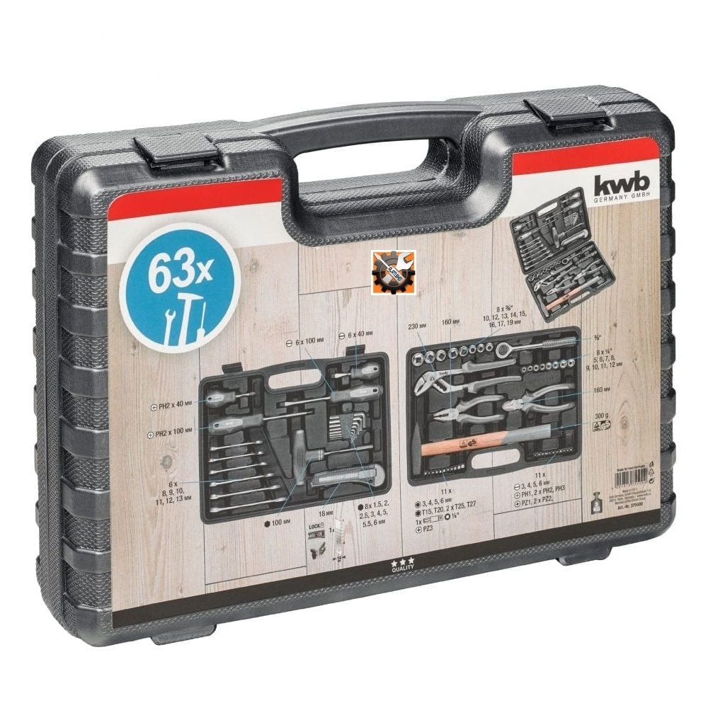 KWB set ručnog alata u kovčegu od 63 dijela se sastoji od: