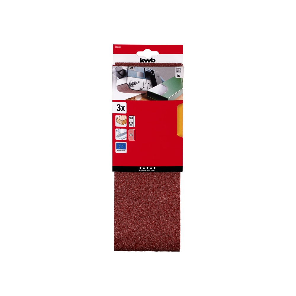 30596-3 I KWB tračni brusni papir za drvo-metal, 100 x 610 mm, GR 100 3 kom - 10 KM (4009319145101)