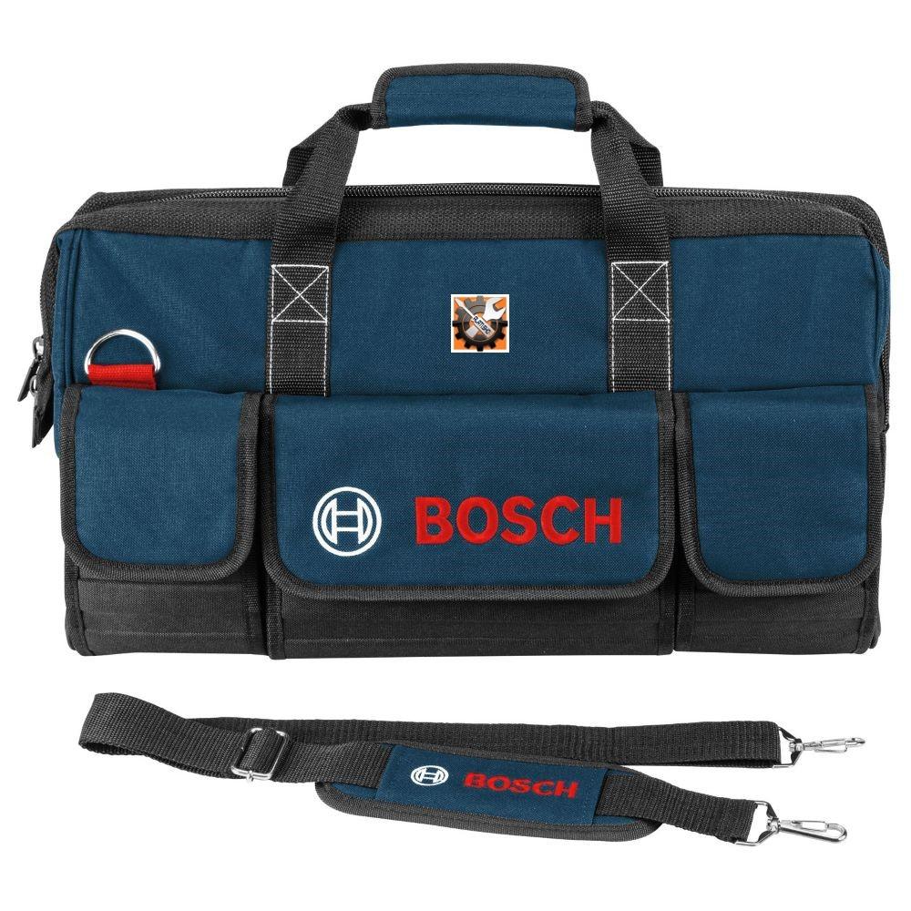 Bosch MBAG torba za alat napravljena za nošenje Bosch električnih alata i pribora. Bosch torba za alat srednje veličine ima više unutrašnjih i vanjskih džepova za alate, pribor i pričvršćenja. Ostale značajke uključuju grebenasto dno s tračnicama za stabilnost, robusna balistička najlonska konstrukcija, patent zatvarač industrijske kvalitete i logotip s reflektorskim trakama kako bi povećala sigurnost na gradilištu. Torba za alate MBAG dolazi s podstavljenom ručkom za nošenje i uklonjivim naramenicama za rame za jednostavno sigurno rukovanje.