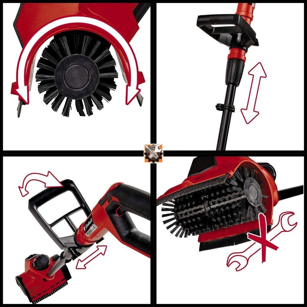 Einhell PICOBELLA akumulatorski čistač površina je višenamjenski uređaj za čišćenje i osvježavanje kamenih površina, drva, umjetne trave, kutova i rubova. PICOBELLA uklanja, na primjer, verdigris i mahovinu s glatkih, hrapavih i osjetljivih površina. Kao član potpuno zamjenjivog sustava punjivih baterija Power X-Change, PICOBELLA se može koristiti u kombinaciji s bilo kojom baterijom sustava. Budući da je bežični alat, PICOBELLA se može fleksibilno koristiti bilo gdje u domu i vrtu - bez ovisnosti o izvorima električne energije. Za jednostavno mokro čišćenje u samo jednom koraku postoji integrirani priključak za vrtno crijevo koji omogućuje temeljito čišćenje. Na taj se način potrošnja vode može prilagoditi prema potrebi zahvaljujući priloženom ventilu za kontrolu vode. Četke se mogu mijenjati pritiskom na gumb, potpuno bez alata. Posebna bočna četka prikladna je za rad na obodu do samog ruba. Svestrana zaštitna kapuljača vodi prljavštinu u pravom smjeru. Brze rezultate osiguravaju izuzetno široki rotirajući valjci četki. Fleksibilan rad četkica za naprijed / natrag znači da se mogu postići maksimalni rezultati dok se četke istodobno glatko vode. Dodatnu fleksibilnost pruža i beskonačno podesiva kontrola brzine. Aluminijska cijev podesiva po visini može se prilagoditi individualnim zahtjevima za rad prilagođen leđima. Uz to, PICOBELLA ima ergonomsku ručku s mekanim rukohvatom i dodatnu ručku s praktičnim integriranim vodičem za vrtna crijeva. Proizvod se isporučuje u kompletu sa SREDNJOM četkom za čišćenje kamena. Proizvod se isporučuje bez baterije i punjača koji su dostupni zasebno.
