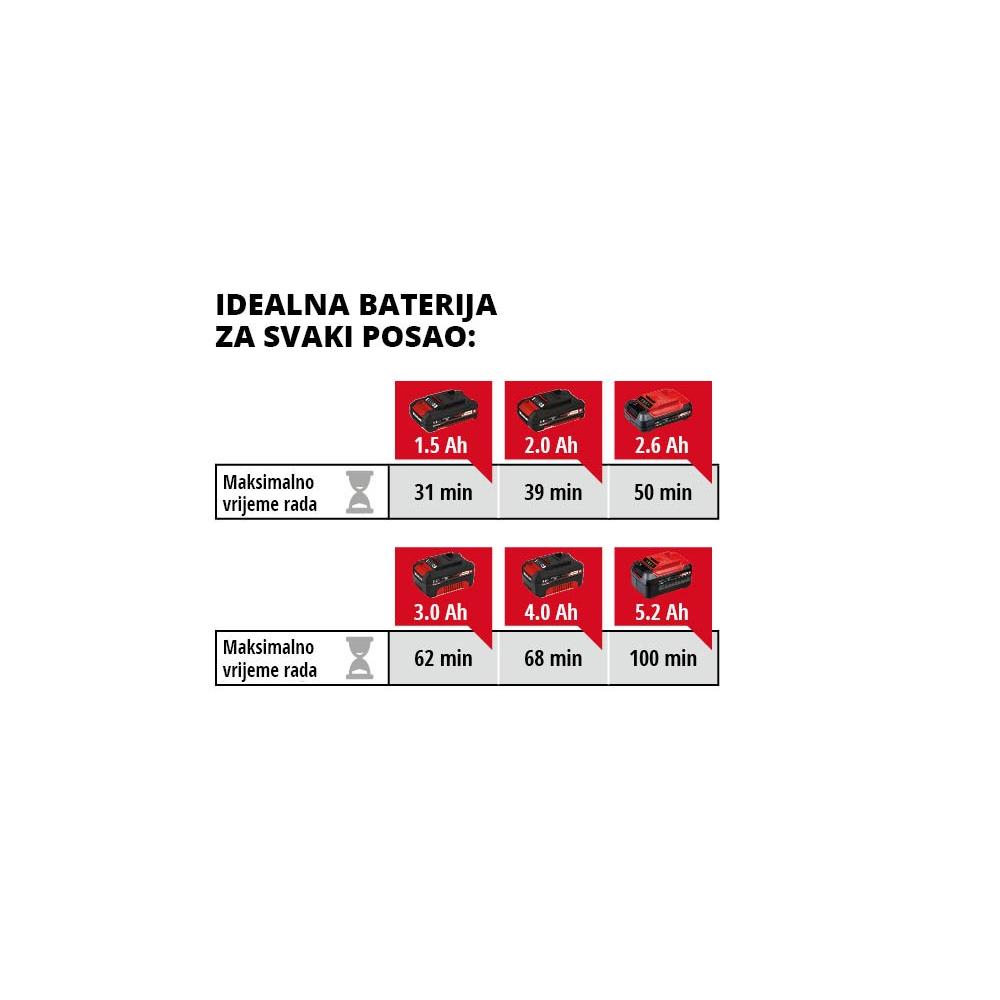 | Kapacitet akumulatora | 1.5 / 2.0 / 2.5 / 3.0 / 4.0 / 5.2 / 4.0-6.0 Multi Ah Plus / 5-8 Ah Multi Ah Plus |