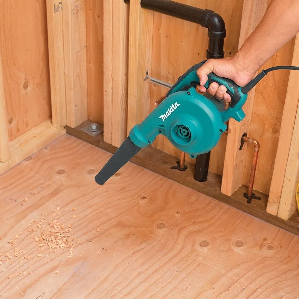 Makita električni puhač/usisavač UB1103Z slobodan je od statičkog elektriciteta, sprječava nakupljanje statičkog elektriciteta uzrokovanog prašinom u uređaju. Novi dizajn ručke omogućuje ugodniji rad. Uređaj je jednostavan za rukovanje. Veliki prekidač može se pritisnuti s dva prsta za rad bez umaranja, s kontrolom promjenjive brzine. Može se koristiti kao vakum s dodatnom vrećicom za prašinu