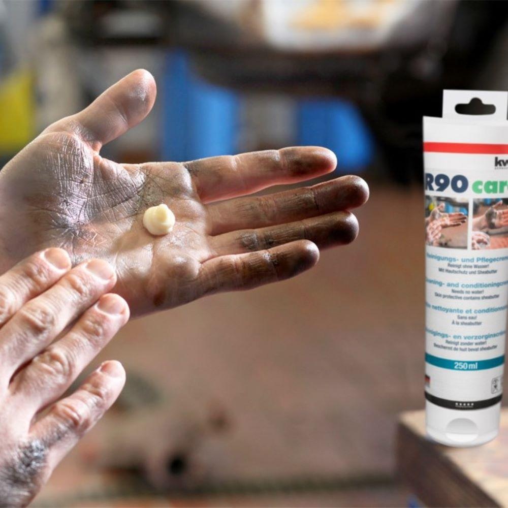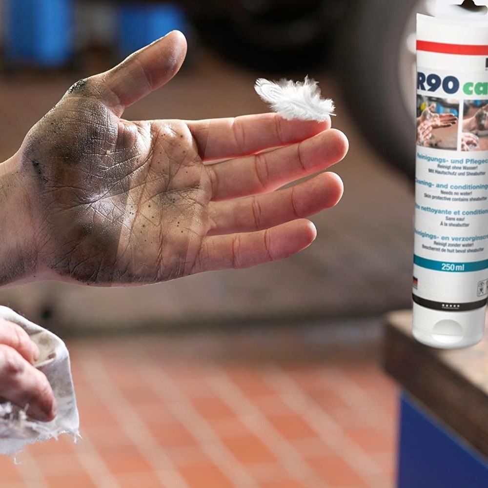 Trljajte R90 care u prljave ruke dok se prljavština ne otpusti, a zatim obrišite krpom – i gotovi ste.