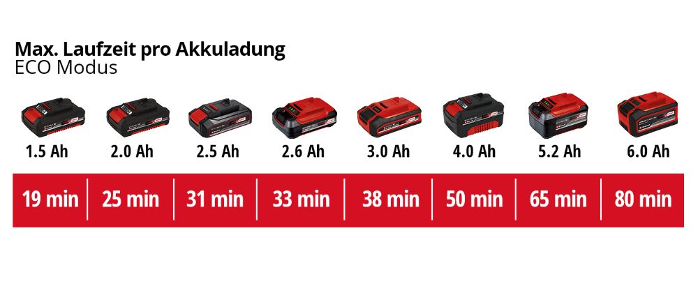 | Kapacitet akumulatora | 1.5 / 2.0 / 2.5 / 3.0 / 4.0 / 5.2 / 4.0-6.0 Multi Ah Plus / 5-8 Ah Multi Ah Plus |