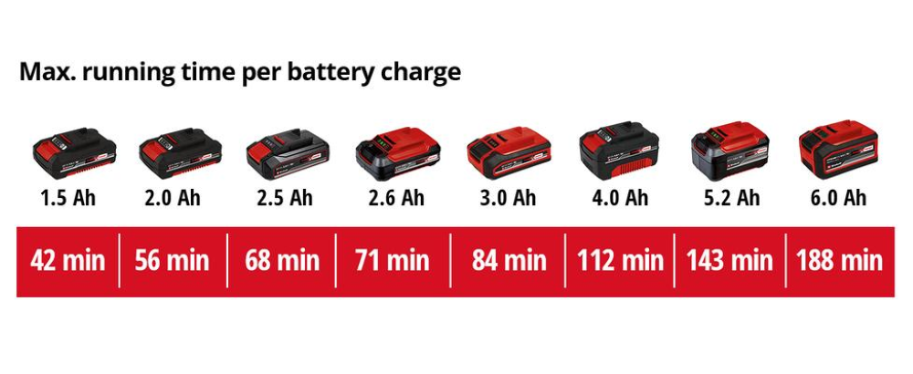 | Kapacitet akumulatora | 1.5 / 2.0 / 2.5 / 3.0 / 4.0 / 5.2 / 4.0-6.0 Multi Ah Plus / 5-8 Ah Multi Ah Plus |