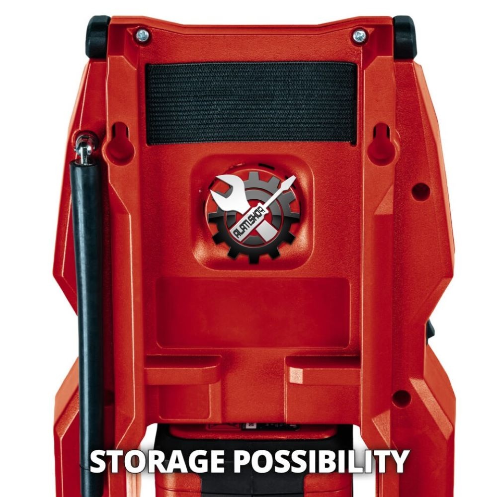 Einhell akumulatorski radio TC-RA 18 Li BT-Solo član je Power X-Change obitelji. Praktična je i robusna pomoć za radionicu, podrum, gradilište i garažu. Ovaj praktični akumulatorski radio ima deset memorijskih postavki za AM i 10 za FM frekvencijske postaje. Povezivanje akumulatorskog radija s pametnim telefonom jednostavno je putem Bluetootha. Sigurno mjesto za pohranu vašeg pametnog telefona ili drugih malih uređaja nalazi se na stražnjoj strani radija. Vrijeme je prikazano na visokokvalitetnom LCD-u. Intuitivne mogućnosti upravljanja oko zaslona nadopunjuju dizajn prilagođen korisniku. Antena se može preklopiti radi uštede prostora. Ovaj akumulatorski radio također je pripremljen za jednostavno pričvršćivanje na zid. Praktična ručka za nošenje omogućuje ugodan transport. Ovaj proizvod dolazi bez baterije i punjača. Oni su dostupni zasebno, npr. kao praktičan starter set Power X-Change.