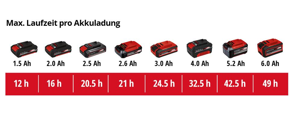 | Kapacitet akumulatora | 1.5 / 2.0 / 2.5 / 3.0 / 4.0 / 5.2 / 4.0-6.0 Multi Ah Plus / 5-8 Ah Multi Ah Plus |