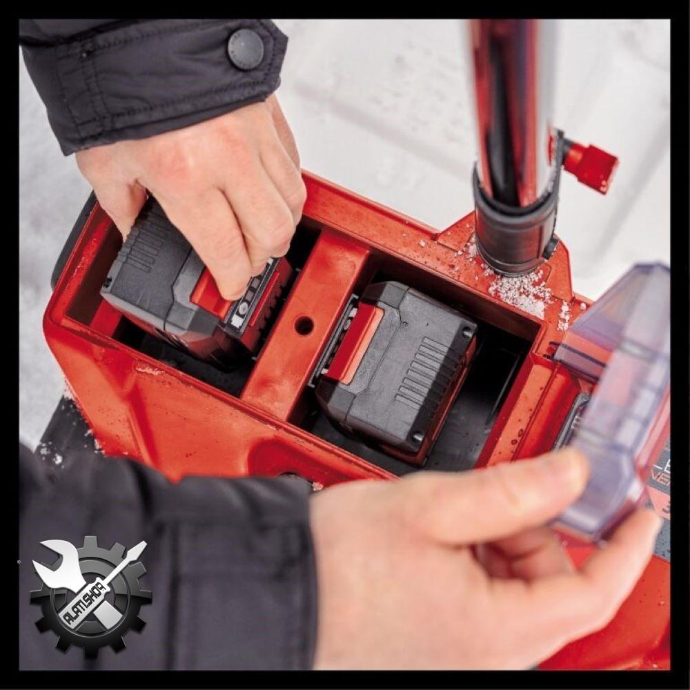 Einhell akumulatorski čistač snijega GE-ST 36/40 Li E-Solo pokazao se kao snažan pomoćnik zimi za čišćenje dvorišta ili nogostupa. Čišćenje snijega dječja je igra s moćnim članom Power X-Change obitelji, opremljenom snažnom tehnologijom TWIN PACK i motorom bez četkica. Motor bez četkica nudi više snage i dulje vrijeme rada od konvencionalnog motora s ugljenim četkicama, dok kontrola brzine osigurava da se akumulatorski čistač snijega može prilagoditi snježnim uvjetima. Smjer izbacivanja snijega može se jednostavno podesiti pomoću upravljačke poluge: lijevo, desno ili ravno. Dodatna ručka omogućuje ugodan rad s dvije ruke i stabilno vođenje, a akumulatorski čistač snijega je također samostojeći – što štiti uređaj. Još jedna sigurnosna mjera je sigurnosni prekidač u 2 točke. To štiti od nenamjernog pokretanja. Akumulatorski čistač snijega može se jednostavno transportirati pomoću integrirane ručke za nošenje. Poklopac za baterije s praktičnim magnetnim zatvaranjem štiti baterije od snijega i vlage tijekom rada. Za rad su potrebne 2x 18 V Power X-Change baterije, a za optimalne rezultate preporučuju se baterije od 4,0 Ah ili više. Isporuka ne uključuje bateriju ili punjač, ali su dostupni zasebno, na primjer kao praktičan PXC Starter Kit.