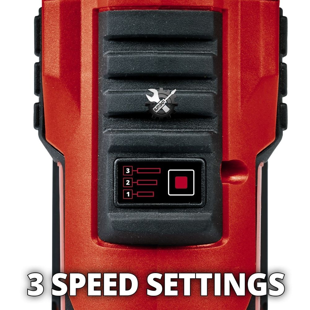 S tri razine brzine, brzina i moment se mogu optimalno prilagoditi. S prvim stupnjem, na primjer, manji vijci se mogu pažljivo zavrnuti, dok treći stupanj daje potrebnu snagu za otpuštanje matica kotača.