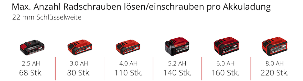 Zamjena gume rijetko je bila lakša nego s Einhell Professional akumulatorskim udarnim ključem IMPAXXO 18/400. S maksimalnim okretnim momentom od 400 Nm, elektronikom brzine i snažnim mjenjačem s 3 brzine, otpuštanje i zatezanje matica kotača i uvrtanje dugih vijaka najlakše su vježbe za pogonski agregat. IMPAXXO 18/400 akumulatorski udarni ključ se isporučuje bez baterije ili punjača. Prodaju se zasebno.