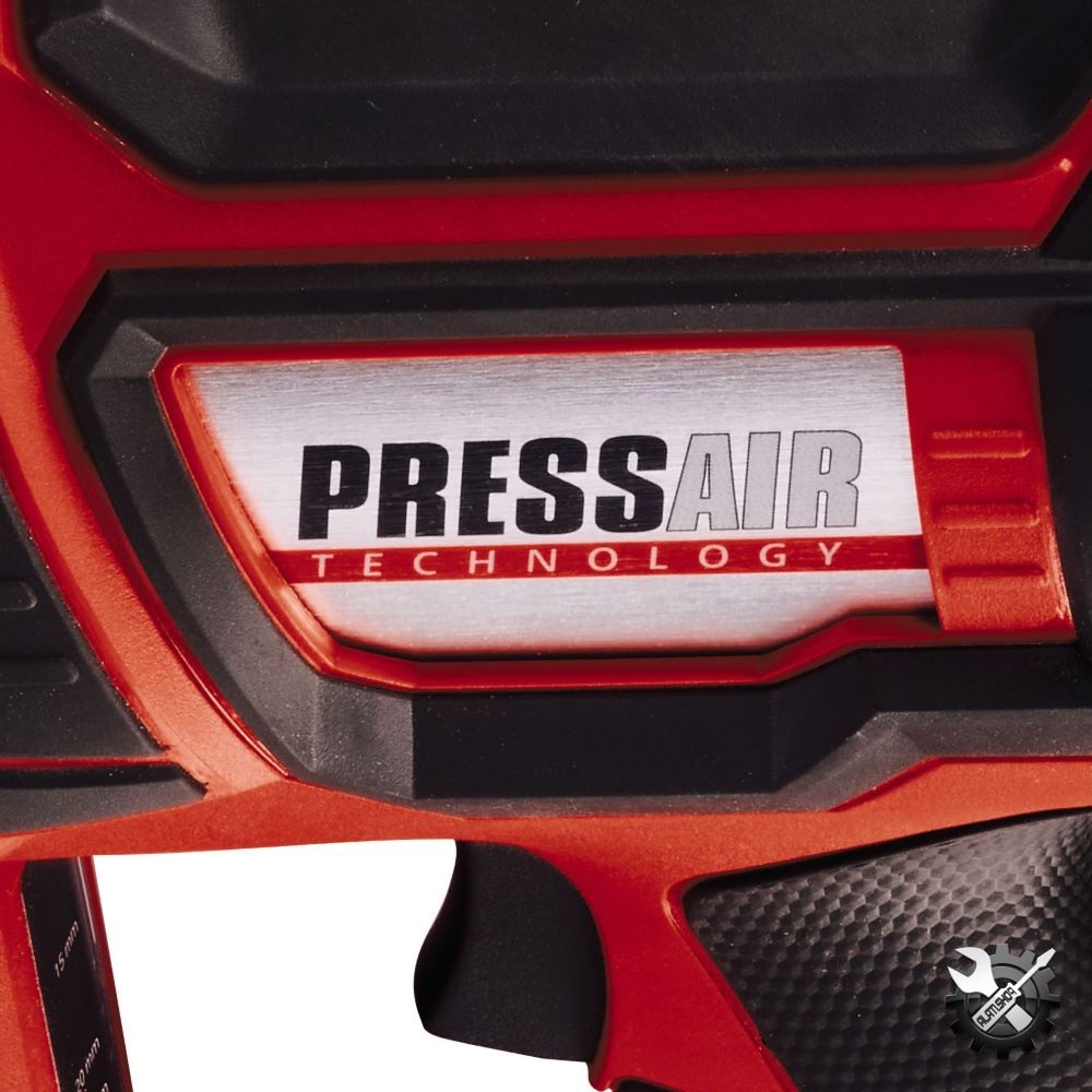 Einhell Professional bežični klamerica FIXETTO 18/38 S ubada spajalice s jakim udarcem u odgovarajući materijal. Tacker radi s takozvanom PressAir tehnologijom. Zrak se komprimira izravno u uređaju kako bi nastalim pritiskom "ispucao" stezaljku. Za razliku od drugih tackera, nisu potrebni ni kompresor ni plinske patrone ili slično. Nema dodatnih troškova niti zahtjeva za održavanjem.