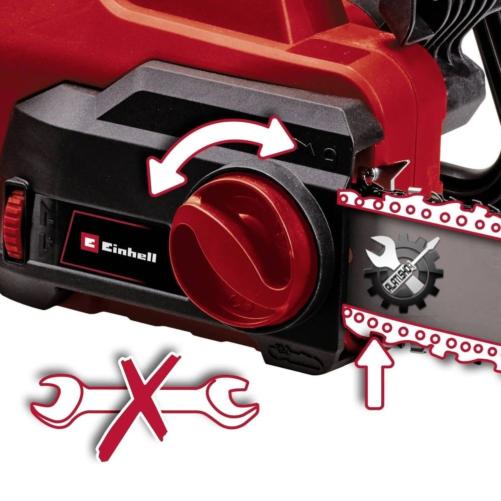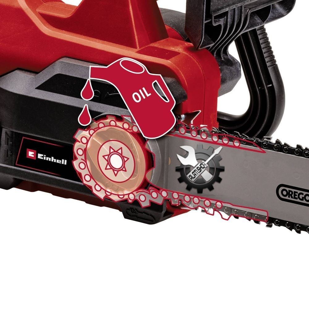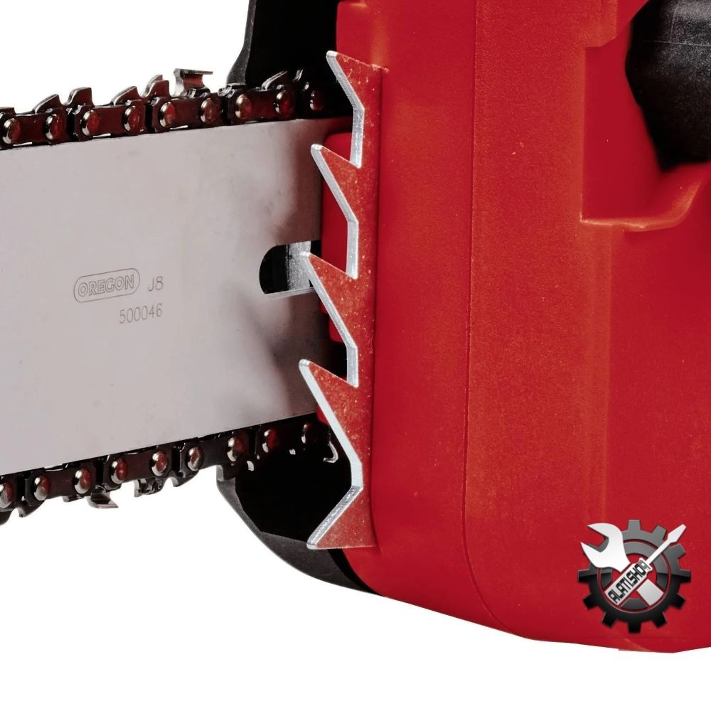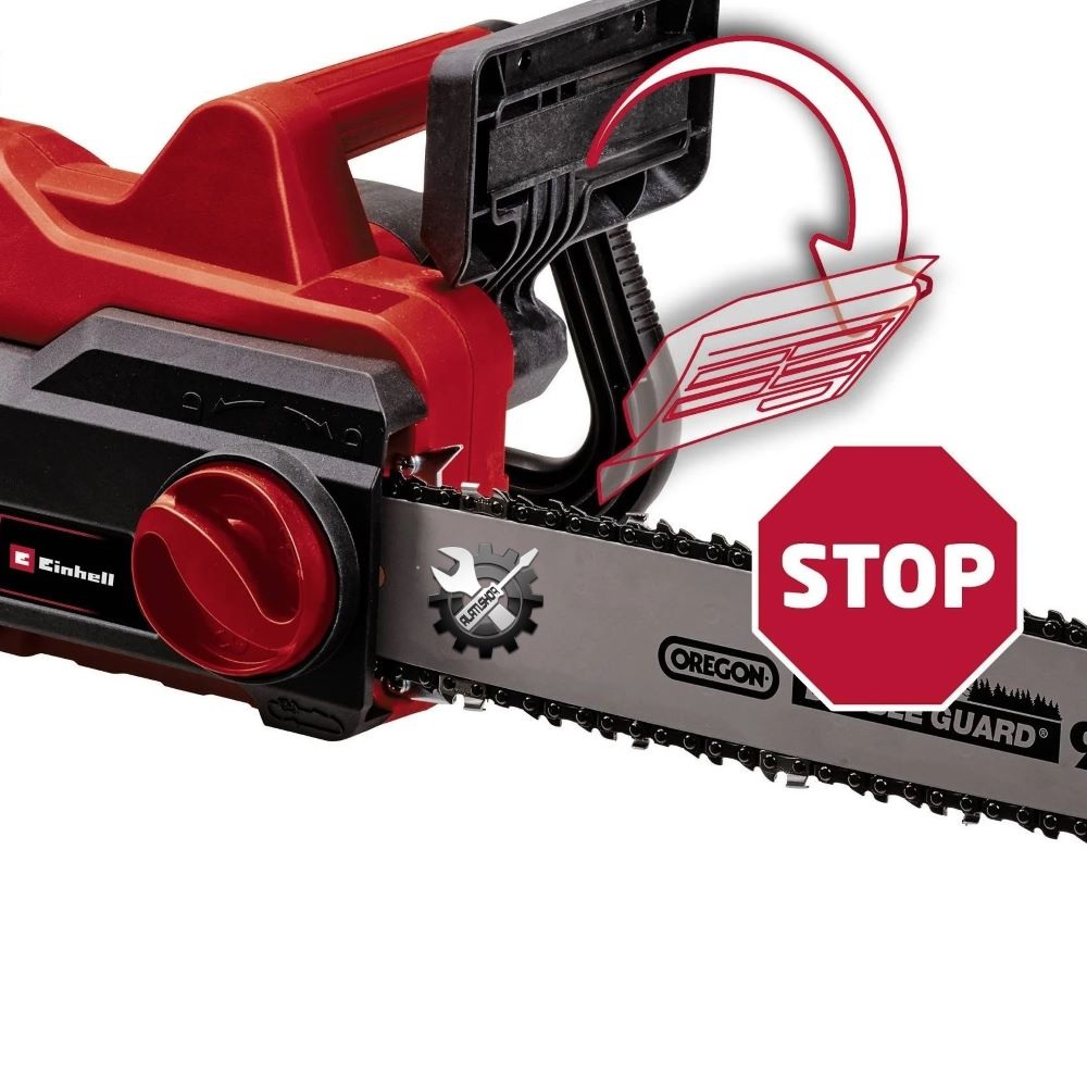 Električna motorna pila GC-EC 1935 praktičan je i snažan uređaj koji se pokazao pouzdanim pomagačem pri piljenju drva za ogrjev, prorjeđivanju i rušenju manjih stabala. Kvalitetna vodiica i lanac iz OREGON-a osiguravaju optimalnu učinkovitost rezanja. Lanac se može zatezati i mijenjati bez alata. Kvalitetan, robustan metalni zupčanik osigurava dobar prijenos snage i dug radni vijek. GC-EC 1935 pila je opremljena zaštitom od povratnog trzaja s mehaničkom trenutnom kočnicom lanca, koja odmah zaustavlja lanac ako pila krene uvis. Razina ulja u spremniku za ulje automatskog podmazivanja lanca može se lako provjeriti zahvaljujući velikom kontrolnom staklu. Veliki otvor za punjenje ulja s brzim zatvaračem omogućuje jednostavno dolijevanje ulja. Vijak za hvatanje lanca osigurava sigurnost ako lanac skine. Robusni metalni graničnik pandže osigurava sigurno vođenje i služi kao oslonac pri piljenju debla koja leže ravno. Napojni kabel zaštićen je kabelskim rasterećenjem od zatezanja.