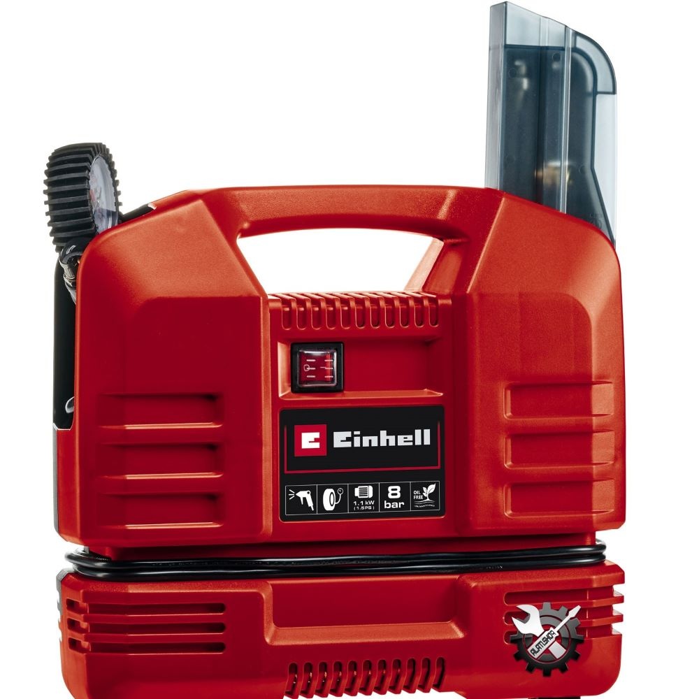 Einhell kompresor za kovčeg TC-AC 190 OF Set snažan je svestrani uređaj za svaku mobilnu upotrebu. Sa svojih laganih 5 kilograma i ravnim dizajnom, kompresor je savršen dodatak i radionici i garaži, a također nalazi svoje mjesto u automobilu kao "rezerva". Ekološki prihvatljiv kompresor ima bezuljni motor od 1100 W i stoga se može koristiti bez puno održavanja.