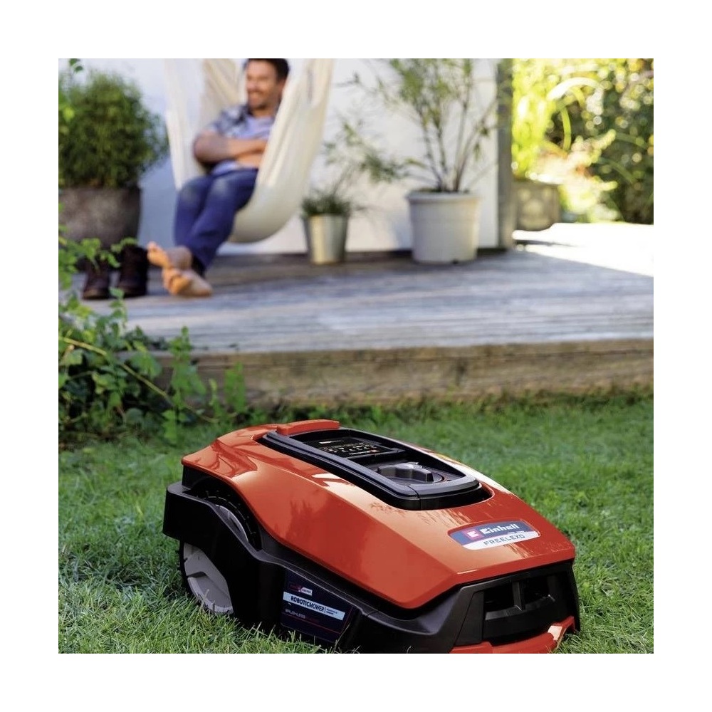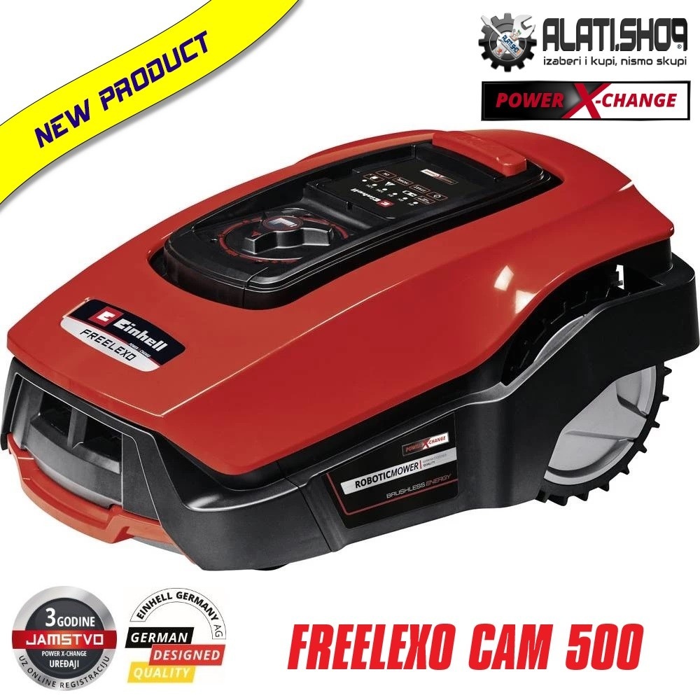 Einhell FREELEXO CAM 500 pripada snažnoj obitelji Power X-Change, koja pruža neograničenu fleksibilnost unutar obitelji sustava. Litij-ionske baterije u seriji mogu se kombinirati sa svim uređajima sustava. Uz pomoć integrirane kamere, FREELEXO CAM 500 automatski prepoznaje granice travnjaka koji se kosi percipirajući površine travnjaka na temelju boja i struktura. Fizičke granice, kao što su zidovi, živice ili drveće, prepoznaju integrirani ultrazvučni senzori, dok kamera bilježi optičke granice kao što su malč od kore, katran i kamenje. To vam štedi dugotrajno i mukotrpno postavljanje granične žice, a robotska kosilica može odmah početi s radom. Zahvaljujući kameri, robotska kosilica može detektirati različite površine, a zahvaljujući senzorima za udarce i prepreke može detektirati i prepreke veće od 10 cm. 5 metara duga magnetska traka uključena u isporuku također služi kao virtualna granica za robotsku kosilicu nakon što je postavljena u vrtu. Magnetski senzori u FREELEXO CAM detektiraju magnetsku traku tako da se robotska kosilica gasi na rubu trake. To znači da se magnetskom silom mogu ograničiti područja koja se ne mogu pokositi u kratkom roku, na primjer svježe posađeno drvo ili cvjetna livada. Također ima LED zaslon i intuitivnu tipkovnicu pomoću koje se mogu programirati vremena košnje. Robotska kosilica zaštićena je od krađe PIN kodom i signalom upozorenja. Povratak na stanicu za punjenje i proces punjenja odvija se automatski ako je potrebno. Integriran je i senzor za kišu. Robotska kosilica ima podešavanje visine rezanja od 20 mm do 60 mm i prikladna je za nagibe do 25%. Ručka za nošenje osigurava udoban transport. FREELEXO CAM 500 dolazi sa svime što je potrebno za instalaciju i rad. Namijenjen je za travnjak površine do 500 m². Opseg isporuke uključuje bateriju od 3,0 Ah, stanicu za punjenje, 3 zamjenska noža, 12 m kabela za navođenje, 5 m magnetske trake, 25 kuka za pričvršćivanje i 2 spojne stezaljke.