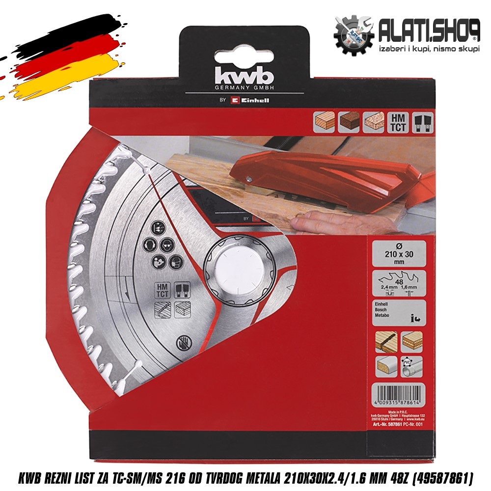 Karbidni (TCT) list pile sa 48 zubaca pile, promjer lista 210 mm, promjer osovine 30 mm i debljina 1.6 mm. Pogodno za tvrdo drvo, šperploču i meko drvo, drvene kompozite i PVC. Pogodno za Einhell TC-SM 216 i TC-MS 216 pile.