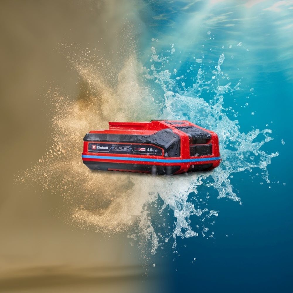 Einhell 18 V 4,0 Ah SEALED Power X-Change PLUS dio je multifunkcionalnog i beskonačno kombiniranog Power X-Change akumulatorskog sistema iz Einhella. Univerzalne Power X-Change baterije pružaju snagu i izdržljivost za sve akumulatorske alate u cijeloj obitelji proizvoda koji pokrivaju i radionicu i vrt. Posebna značajka baterije SEALED? Njeno zatvoreno kućište znači da je vodootporna i otporna na prašinu u skladu sa zaštitnom klasom IP57. Zahvaljujući integriranoj zaštiti od kratkog spoja preko dodatnog kontakta na utičnici baterije, senzorski sustav detektira kontakt s vodom i isključuje elektroniku. To osigurava da se baterija može nastaviti koristiti nakon što se osuši, čak i ako je potpuno uronjena u vodu. Njezine litij-ionske ćelije najnovije generacije pružaju 100% više energije za maksimalne performanse u svim primjenama, zajedno s 13% kompaktnijim dizajnom i 10% smanjenom težinom. Osim toga, naša PLUS tehnologija daje dodatnu snagu za intenzivne zadatke. Nadalje, visokokvalitetna baterija ne pati od memorijskog učinaka ili samopražnjenja kao kod većine baterija, što znači da može isporučiti dosljednu, veliku snagu. 18 V 4,0 Ah Power X-Change PLUS je vrhunska baterija u Power X-Change obitelji, a također je prikladna za TWIN PACK korištenje u 36 V alatima. Procesno kontrolirani ABS sustav aktivnog upravljanja baterijom kontinuirano nadzire parametre baterije koristeći svoj integrirani mikroprocesor. To osigurava maksimalnu sigurnost, optimalne performanse uređaja, maksimalno vrijeme rada i maksimalni vijek trajanja. Možete provjeriti trenutni status napunjenosti putem 3-stupanjskog LED indikatora. Dizajn kućišta čini ju otpornom na koroziju i mehaničke udare. Gumena obloga daje bateriji visoku zaštitu od udaraca i osigurava dobro držanje. Zahvaljujući udubljenom zaglavniku, može se jednostavno ukloniti sa svih alata. Dolazi bez punjača koji je dostupan zasebno.