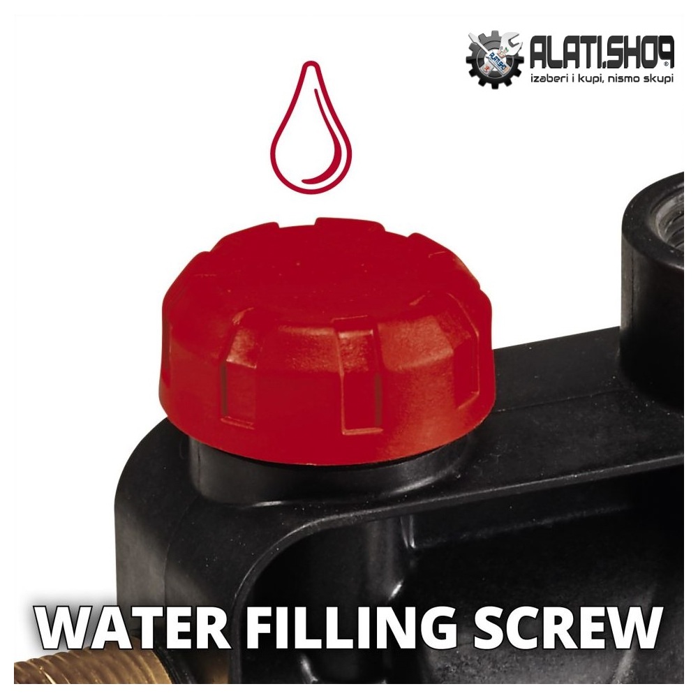 Puštanje vrtne pumpe u rad iznimno je jednostavno zahvaljujući zasebnom otvoru za punjenje vode.